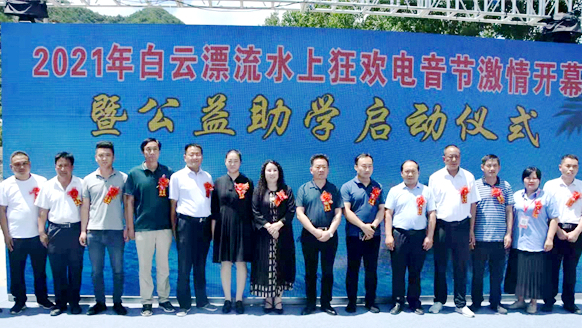 明白川村党支部书记王营见讲话:今天我们欢聚一堂,在此隆重举行2021白云飘流水上激情狂欢电音节开幕暨公益助学启动, 我谨代表明白川村全体村民向张金苹董事长以及白云漂流和水上乐园,送上衷心的祝福 ,同时我们也将带领身边的朋友一起积极参加张金苹董事长发起的公益事业。