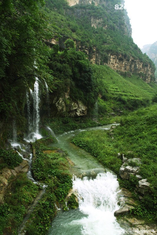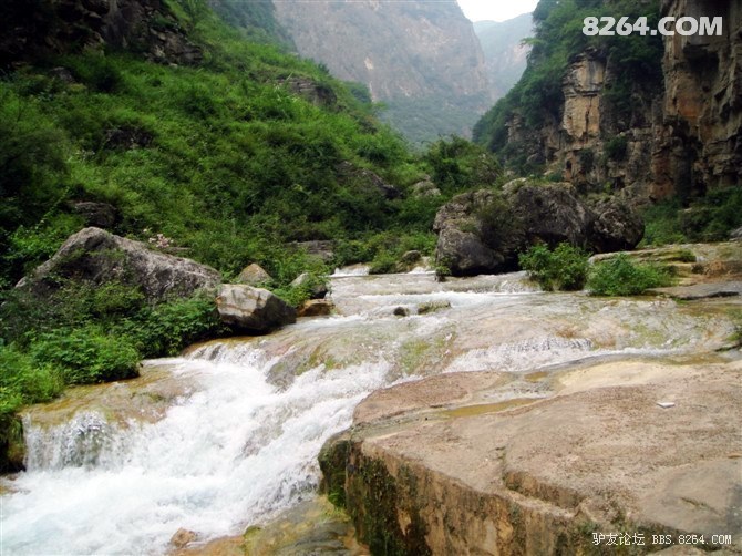 八道水是八泉峡最幽深、最奇异、最壮美、最秀丽的风景区,10公里的长峡通往平顺县的暖泉村。在距村5公里处流出股股清泉,得名八道水,是古淇河的源头之一。八道水名曰“八道”,实际并非只有八道,在此区域泉眼很多,有的从悬崖间飞流而下,有的在草丛中潺潺流淌,有的在平地上喷射而出。置身此地,真可谓水的天地,泉的世界。这些清泉在提脑山和耳把山处汇为一泉下泻,发出潺潺、汩汩的响声。八道水所以遐迩闻名,其原因:一是这里的山粗犷壮美,河沟宽处百米有余,窄处只有三、四米,而沟两边的高山全是悬崖绝壁,如钟如屏,抬头仰望,蓝天一线,清泉如带绕山转,美境引人入胜;二是奇石洞穴美,在河沟的中段有一截开阔地,宽100米,长600米,这段山崖上洞穴甚多,其中东山上最大的一个洞叫黑龙洞,洞口象龙嘴,雨天洞水泼天而下,晴天则可入洞,洞长约300米,洞形如长藤结瓜,蜒曲幽深,钟乳石奇形怪状。在八道水的河沟中,怪石嶙峋,每一块都有10米多高,石上绿草丛生,桑榆结伴。最大的一块巨石,高12米,宽10米有余,底部仅一米见方。传说是女娲补天时用剩的仙石;三是流水清澈透明,河中水潭不管有多深,一眼可见潭底。而且流水声清脆悦耳,似话如歌;四是花草如织,气味芬芳,灌木丛生,绿野含茵。