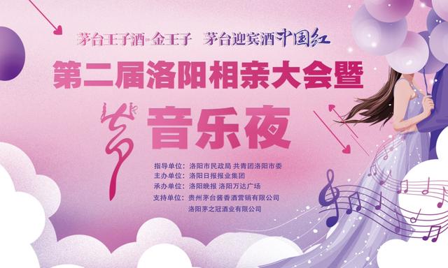 赵松林 宋清 唐得福 “茅台金王子”洛阳相亲大会8月22日、23日举行 浪漫七夕即将到来,你有约会的对象吗? 为给洛阳单身青年搭一座鹊桥,帮助青年人才扎根洛阳、安居洛阳,在市民政局、共青团洛阳市委的指导下,8月22日、23日,洛阳日报报业集团将联合贵州茅台酒股份有限公司、洛阳茅之冠酒业有限公司在万达广场举行“‘茅台王子酒(金王子) 茅台迎宾酒(中国红)’第二届洛阳相亲大会暨七夕音乐夜”活动,如果你是单身人士,或有单身儿女,欢迎来现场看看。 本次活动为公益活动,全程免费。