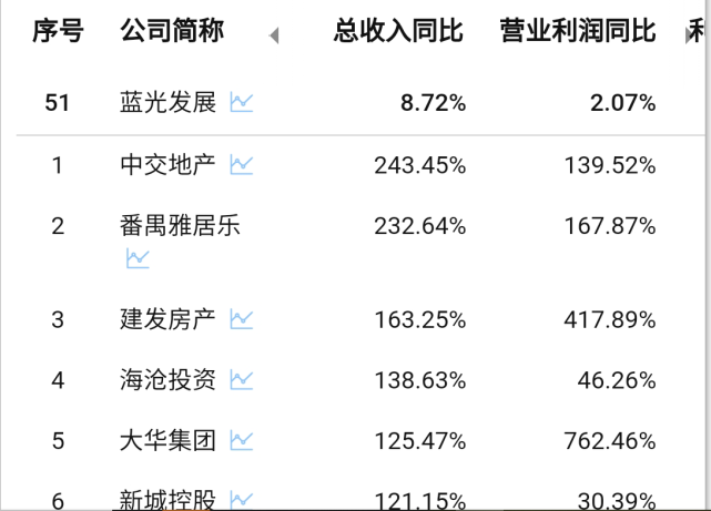 腾讯房产查询中报发现,蓝光发展上半年总收入同比上涨仅为8.72%,相对于中交地产243.45%及建发房产等163.25%的总收入同比增长显然不占优势,而营业利润同比仅增长2.07%,相对于其他企业翻番的同比增长表现也是不尽如人意。此外,利润总额0.15%及归母净利润同比7.45%的微小增长也让其发展倍显迟缓。