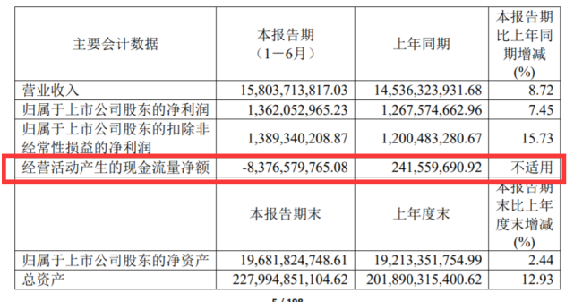 另外,在现金流方面,蓝光发展的表现也不尽如人意。半年报显示,今年上半年蓝光发展经营现金流量净额为-83.77亿元,同比呈现断崖式下滑,降幅高达3567.71%。