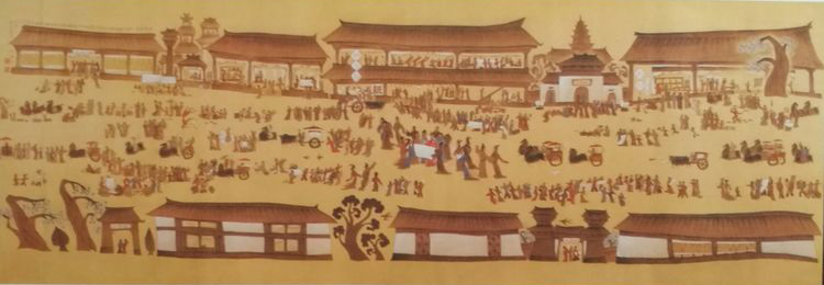 记者:《大唐洛阳盛景图》表现内容是什么? 寇衡:这幅长卷宽近一米、长约十几米,以隋唐洛阳城中轴线为中心,画面中天堂、应天门、端门、天枢等与郭城南门定鼎门遥望,里坊区、天街,洛河两岸的秀丽风景一一展示。由东向西展现的分别是瀍河、浅漕渠、北市、街道、含嘉仓、东城、皇城、宫城、御花园、上阳宫、谷水、虹桥、石泄口、洛河、西苑、通济渠等;由北向南展现的分别是明堂、应天门、端门、黄道渠、天枢、天津桥、魏王堤和天街等。长卷2012年创作至今,目前已5易其稿,尽可能更接近历史真实,又具有完美的艺术视角效果。