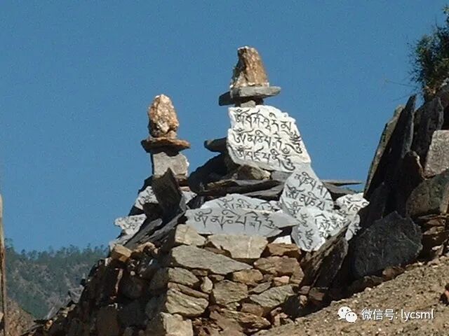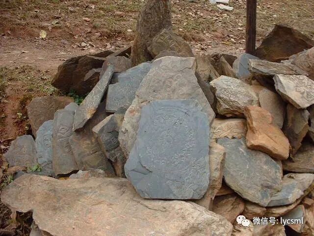 到山顶,我们到达了摩梭人的村庄----加曲,这大概也是玛尼堆,上面写着我们看不懂的经文。