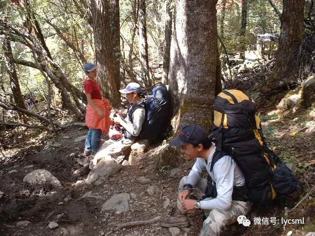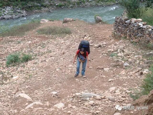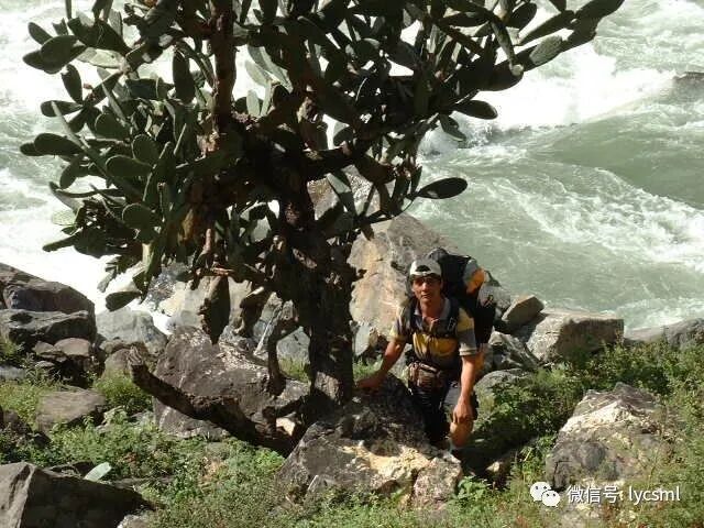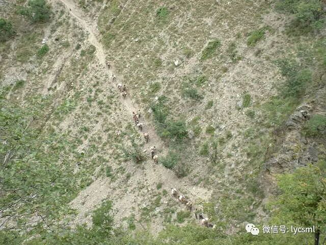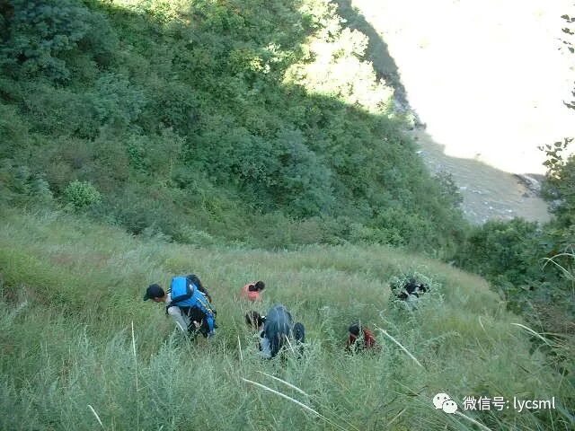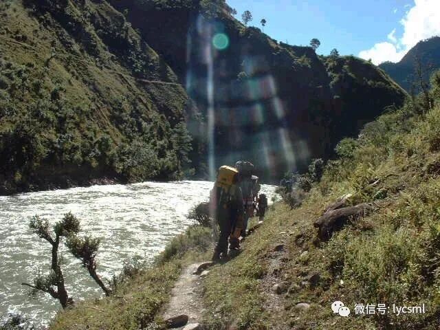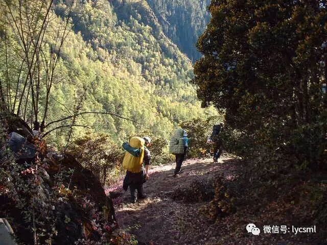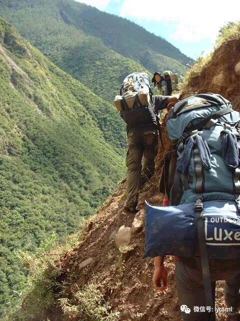 我们没有沿着地图和已往极少数驴友走过的马帮路,而是选择河右边崎岖的山路抄近道前进,这条路只有放羊人和少数山民走过,陡峭的山路上驴友们奋力攀登着。
