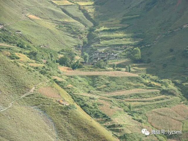 这里的民风与稻城又有不同,山民也从未见过我们这群外星一样的来客,他们从房子里远远地伸出头看我们一眼就缩了回去,在我们下到半山腰时,已看不见一个人,今夜,我们就打算宿营于这三角洲上的农家。