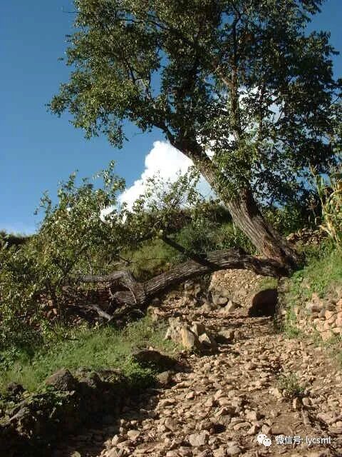 翻山越岭,疾步向前,路遇几个放羊的小女孩,问清道路我们钻过这棵大核桃树后(下图)进入纳西村寨哈地。