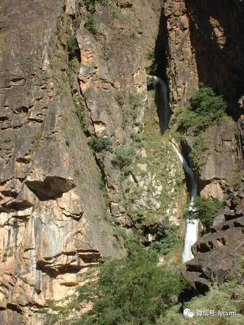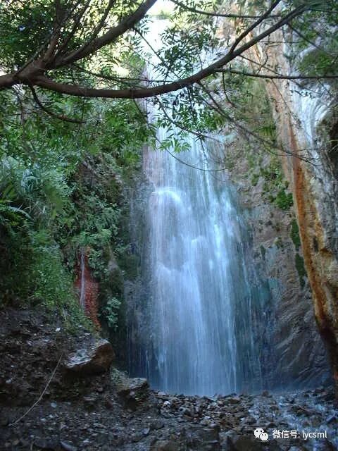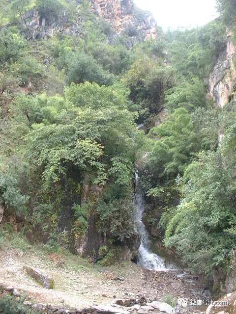 拐过弯我们看到了一飞流直下的瀑布,驴友们拿出相机在这里拍个不停,我始终没有看出来这水从何而来,怎么就从半山腰石缝间飞奔出来。