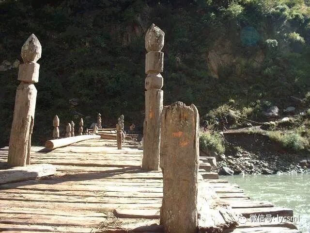 昨夜村子里的狗闹腾了一夜,刚睡着公鸡又趁着天没亮乱叫,这觉是没法睡了,一大早醒来收拾行囊,把两天前洗了的还没晾干的衣物重新装进背包,煮了在东义买的奶粉,就着饼干吃了早饭,打扫完营地我们一行8人告别了这个偏僻的纳西族山村,下到村下的山底,走过昨天来时的小木桥,沿江边山路开始了又一天的穿越。