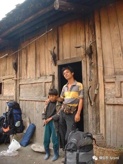 下到村边,看不到一个人,我们走近第一家踩着木梯上到二层,敲开门后讨要水喝,然后进一步表示友好,在对方确认我们不是歹人的情况下,给我们端出了水,递着烟聊着天山民竟允许了队员们在他家门口扎营,直到天要下雨我们厚着脸将背包搬进了他的家里,邻家的两个孩子也好奇地看着我们。