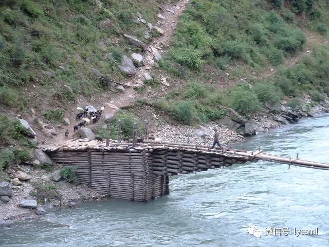 左边是陡峭的山体,右面是坡下奔腾的江水,驴队向着卡瓦村进发。