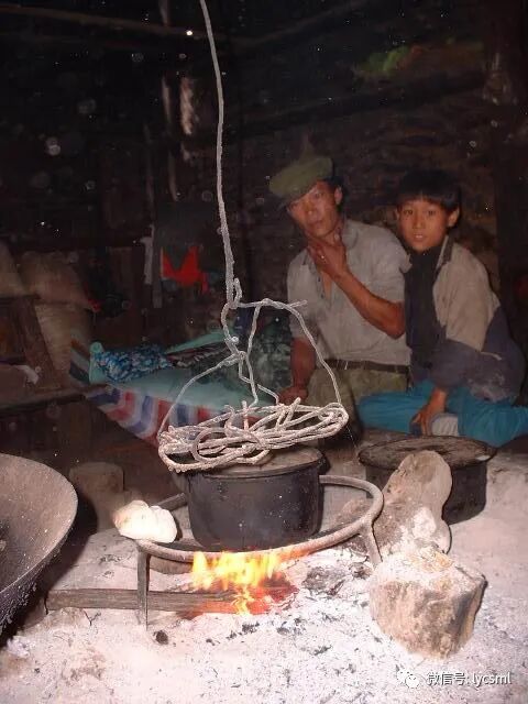 这是个混居着纳西族和普米族的村寨,就着山势建的民房,楼下都是用来养牲畜的,楼上才是人住的地方,面积非常的小,进到屋里首先看到的是火塘。
