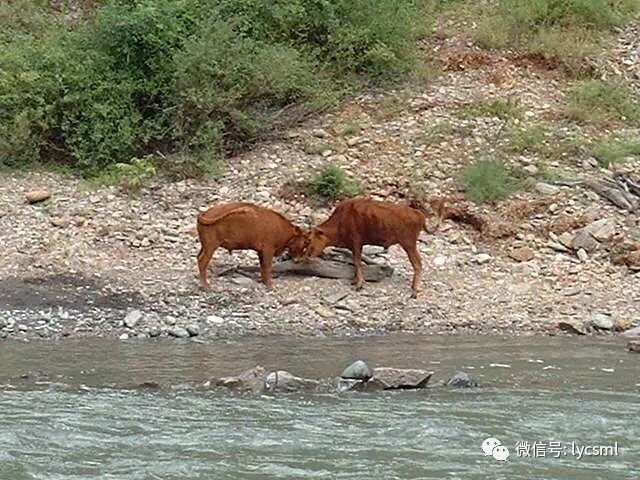 江边小休时,我们观望着河对岸的斗牛。