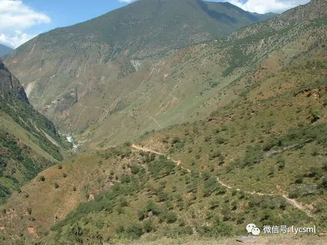 终于登上了山梁,告别纳西小伙子后,我们迎着山风凉爽地吹着,走到望着绵延不绝的群山和奔腾不息的河流,我感觉我们驴队已进入了一个原始社会。