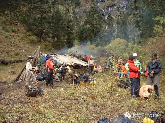 队伍还要前进,夜色降临时,我们找到了一块较平坦的山坡扎下营来,这里除了没有水实在是块好营地,晚餐就免了吧,燃起篝火,闲聊到入睡,由于又走到海拔3000多米处,山上较冷,夜间多次被冻醒。 10月8日: