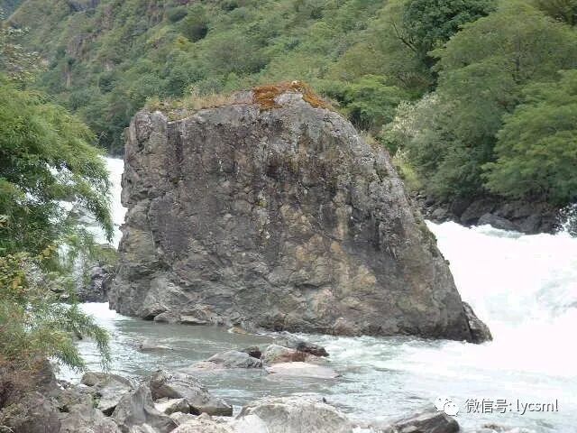 一块巨石竖立在河中间,让我联想到“中流砥柱”一词.