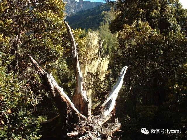 行走在原始丛林中,经常能看到怪异的树木,你瞧,这棵松树扁曲的身材上分成了两棵。