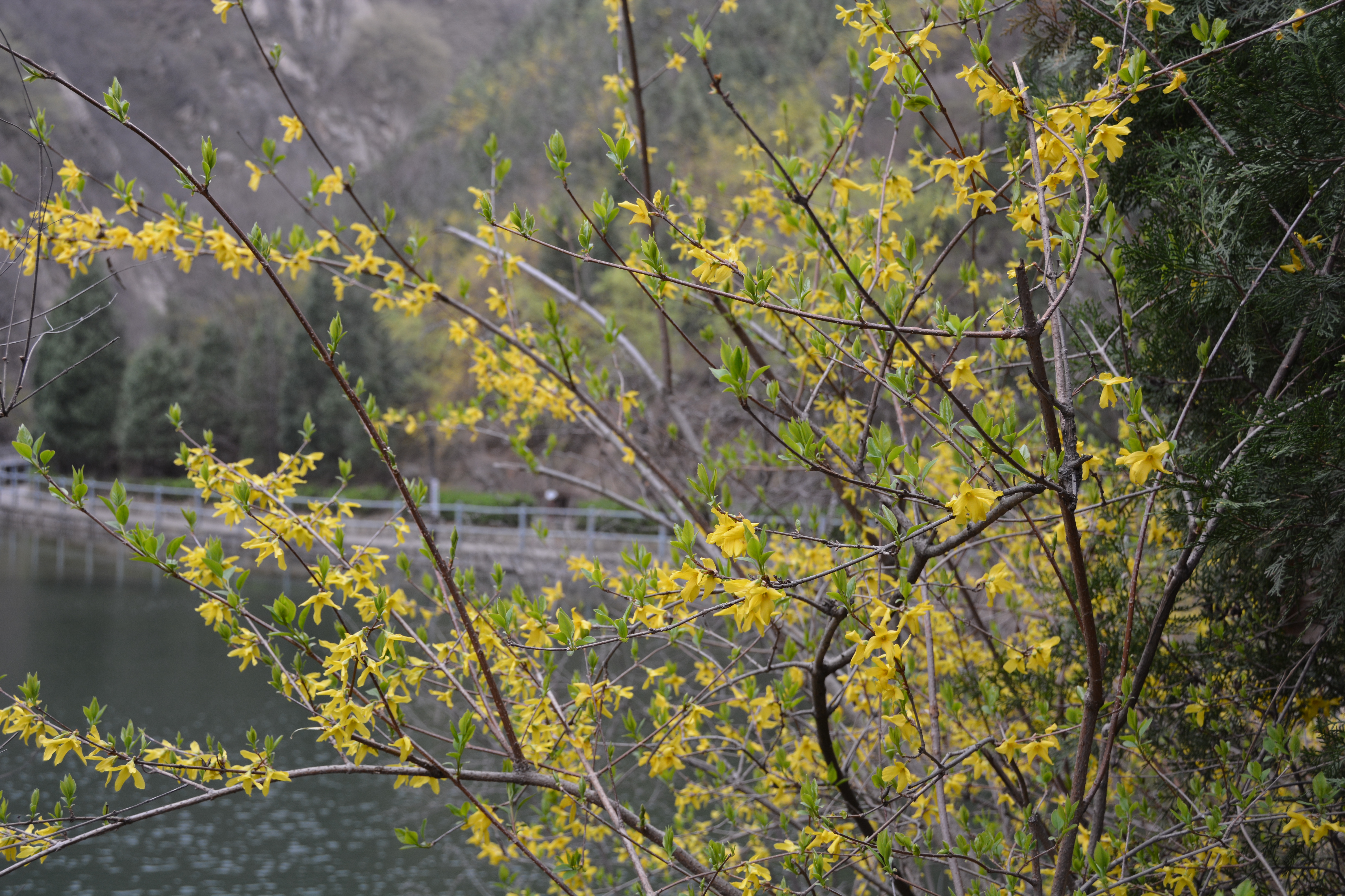 “千步连翘不染尘,降香懒画蛾眉春”金灿灿的连翘,目之所及是迎风怒放的金色花海,置身其中,如梦似幻。
