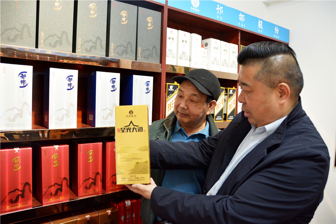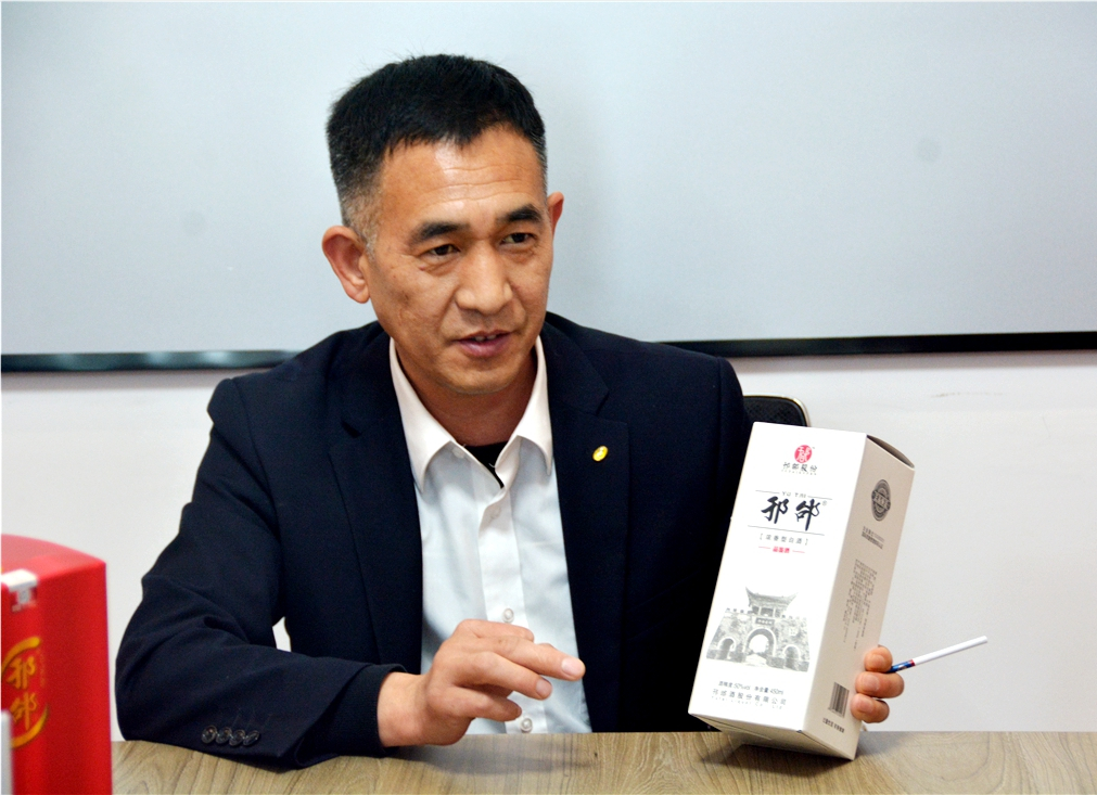 邘邰酒股份有限公司经理于海龙在接受采访时说《上图》:邘邰酒股份有限公司面对竞争激烈的市场格局,以市场为导向,适时求变,大力实施品牌战略,扎实推进品牌建设,不断创新营销模式,不断优化产品结构,加大产品的研发及促销力度,不断拓宽市场的招商工作,基本实现了线上、线下联动营销,切实加强队伍建设,抓好中档酒的差异化营销, 通过客户品鉴、一桌式品鉴会等促销活动,有序拉动终端消费回升,进一步提高邘邰酒品牌知明度和品牌定位 。我们的宗旨是用心酿造,诚信天下!