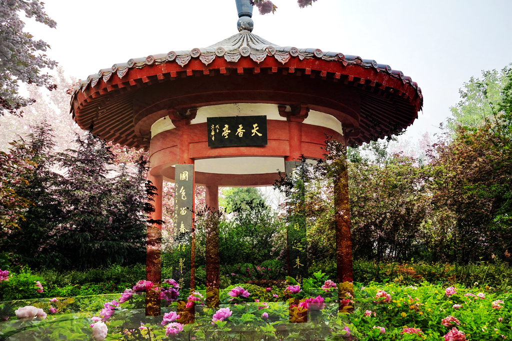 隋唐植物园 曾获最佳牡丹观赏园称号。  阳春四月,正是观赏牡丹花的最佳季节