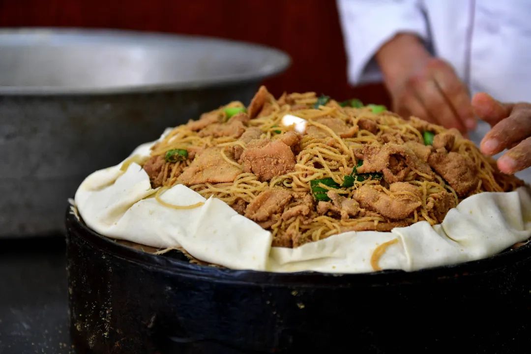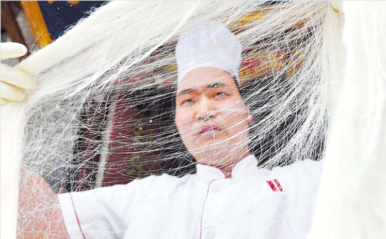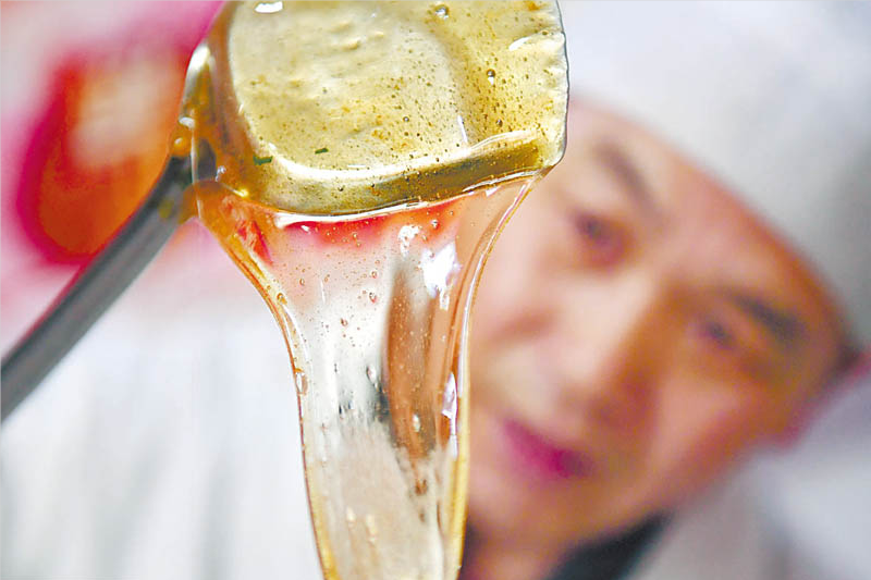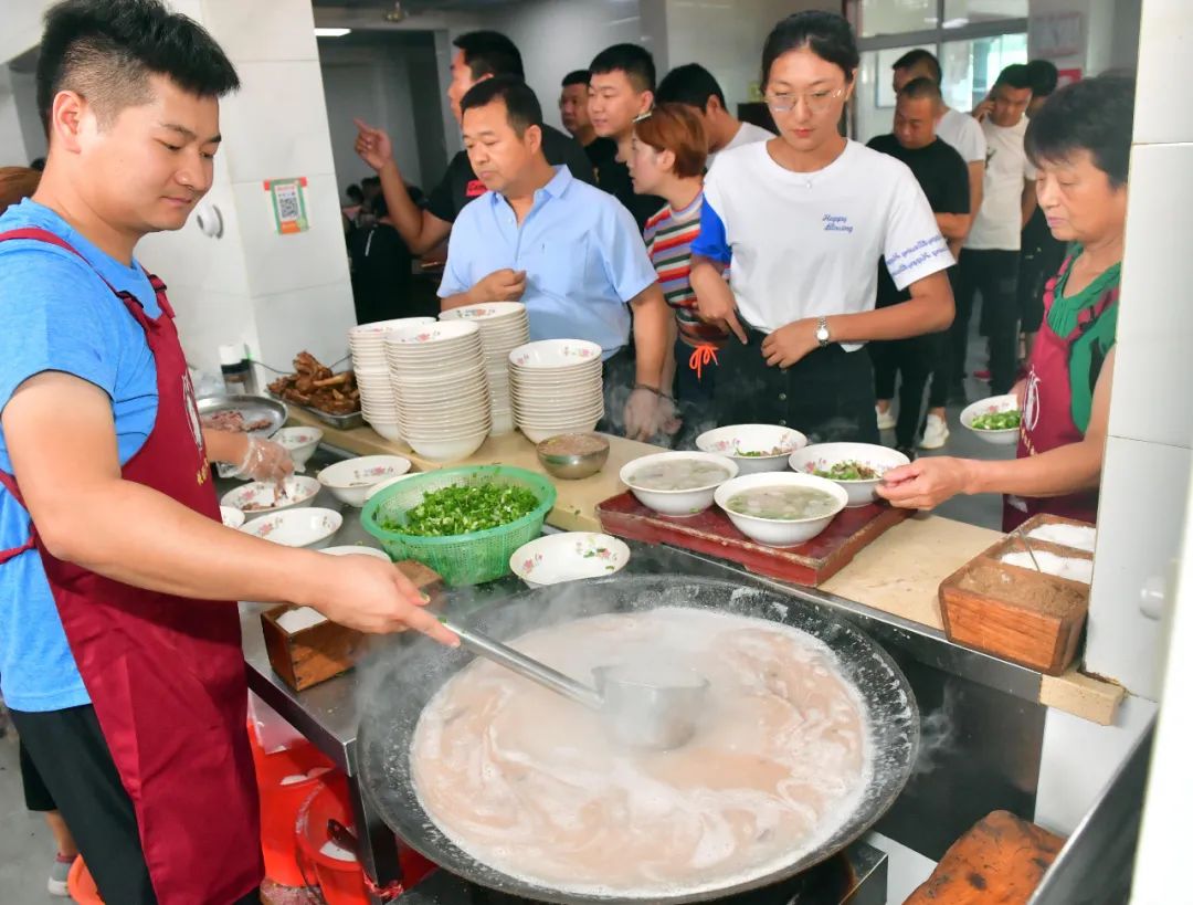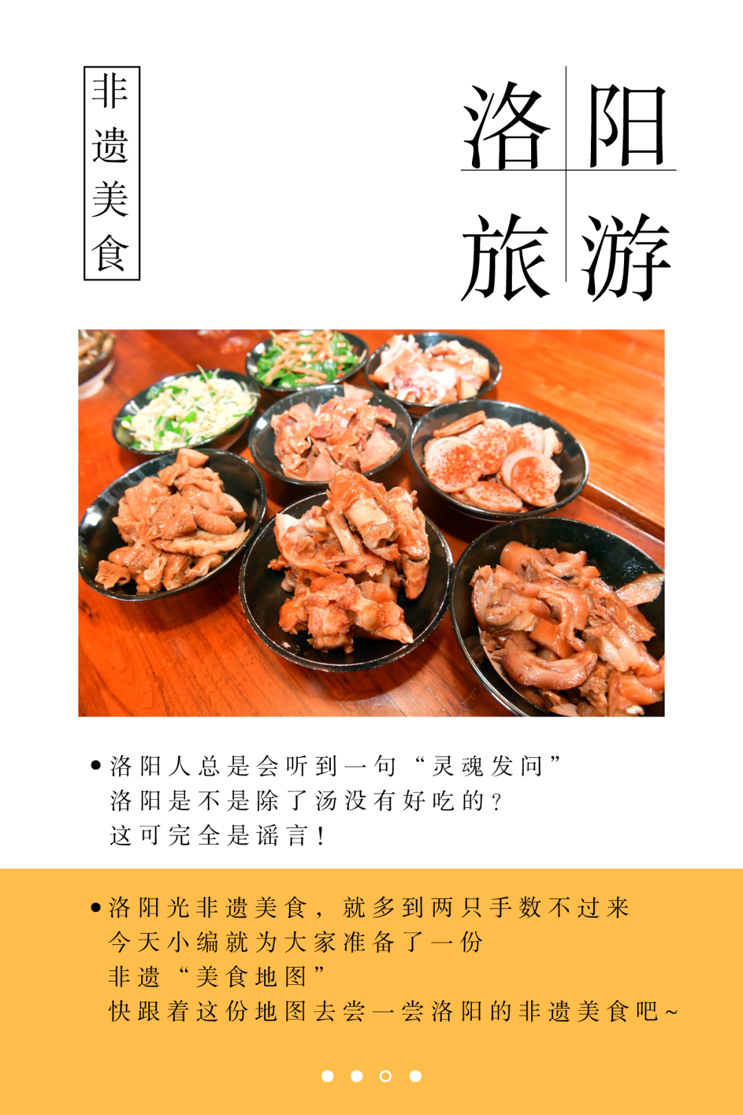 丸子汤 原汁原味实在香 项目:民俗类——洛阳喝汤的习俗(丸子汤) 级别:洛阳市非物质文化遗产  (资料图 张光辉 摄) 在洛阳,喝汤不仅是一种饮食习惯,更是一种文化。无论清晨还是夜晚,遍布洛阳街头巷尾的大小汤馆里,总能看到人们喝汤的身影。汤,已融入了洛阳人的生活。  (资料图 张光辉 摄) 洛阳的汤品种丰富,丸子汤便是其中重要的一种。在洛阳汤客,传承人张志力说,制作丸子汤,汤很关键,他熬汤选用上好的牛棒骨,配以秘方,熬制十几个小时而成,因此汤味浓厚、原汁原味。  (资料图 张光辉 摄) 丸子汤除了丸子,还要配以血块、牛肉、油炸豆腐、韭菜、葱等辅料。师傅用大勺盛了滚烫的热汤倒入配好料的碗里,丸子经热汤一浇,香气四溢,吃起来外焦里嫩,别有风味。 老雒阳浆面条 酸香可口 项目:传统技艺类——老雒阳面食制作技艺(浆面条) 级别:洛阳市非物质文化遗产  (资料图 张光辉 摄) 每个洛阳人心中都有一碗浆面条。洛阳有民谚:“河南府有三宝,孟津梨、灵宝枣、洛阳城里浆面条。”  (资料图 张光辉 摄) 想做一碗地道美味的浆面条,浆味醇厚的老浆是必不可少的。做浆时,先把绿豆或豌豆用水浸泡,待其膨胀后放在石磨上磨成粗浆,用纱布过滤掉渣,然后放在缸里,一两天后,浆水发酵变酸,就可以舀出来做浆面条了。  (资料图 张光辉 摄) 在浆水似开非开之时,下入手擀面,再淋油“打沫”。面条快熟时下白菜,即将出锅时加韭菜、胡萝卜丝。接着,一碗汁稠味美、酸香扑鼻的浆面条就出锅了,再根据个人口味配以熟花生米、芹菜丁、辣椒油、韭花等佐料,看着就让人流口水。  (资料图 张光辉 摄) 如今的洛阳城中,从街头小馆到星级饭店,浆面条随处可见。它质朴自然、清新淡雅,不仅滋养了一代又一代洛阳人,也给外地的游客留下了美好的回味。 马杰山牛肉汤 匠心煮好汤 项目:马杰山牛肉汤制作技艺 级别:洛阳市非物质文化遗产  (资料图 李卫超 摄) 在洛阳牛肉汤的名单上,马杰山牛肉汤已写下浓墨重彩的一笔。马杰山家的牛肉汤馆历史悠久,其祖辈做汤的时间可追溯到清代咸丰初年(公元1851年)。如今,74岁的马世贤先生已是马杰山牛肉汤的第六代继承人。  (资料图 李卫超 摄) 为了煮出一锅好汤,汤馆的主人每天凌晨3点就开始工作了。洗净牛肉是第一道工序,之后把牛肉放入大锅里开始慢煮,5点半前后,煮了近2个小时的牛肉汤便煮好了。  (资料图 李卫超 摄) 他们汤馆用肉十分讲究,必须选用四五岁的牛,因为这样的牛喂养的时间长,肉质筋道,煮出的汤口感更鲜美。每天牛肉送过来后,必须在洗肉池中至少浸泡12个小时,其间至少换3次水。只有经过浸泡、清洗后的牛肉,才可以下锅。  (资料图 李卫超 摄) 用料讲究,也是马杰山家煮出一锅好汤的诀窍。虽然马杰山牛肉汤已经传了六代人,但马世贤依然严格按照祖方选料、配料,且分季节选配,精研细磨,不敢有丝毫马虎。  (资料图 李卫超 摄) 用料齐了,煨汤也有要求。马杰山牛肉汤每天煨汤必须在牛肉煮至六成熟时放料,当汤煮好了,还得边滚边卖,直到卖完为止。马世贤介绍,煮牛肉时,大块牛肉必须把牛油剔除,煮的时候也要掌握好火候,时间长了,肉稀烂,切不成薄片;时间短了,肉又不入味儿。  (资料图 李卫超 摄) 正是有了这一道道近似于打造工艺品的“讲究”,才让齿颊留香的马杰山牛肉汤历经六代人,仍是洛阳人心中的一碗好汤。 李氏芝麻焦干饼 好吃还治病 项目:传统技艺类——老龙门农家李氏芝麻焦干饼传统技艺 级别:洛阳市非物质文化遗产  (资料图 李卫超 摄) 一张芝麻焦干饼除了美味外,还能辅助治疗患者积食、肠胃病,这就是老龙门农家李氏芝麻焦干饼。老龙门农家李氏芝麻焦干饼制作技艺自清代传承至今,已传承百余年。  (资料图 李卫超 摄) 李氏芝麻焦干饼虽然好吃,但制作工序十分繁琐,每道工序都有很高的技术性要求。和面时要加入食盐、黑芝麻、白芝麻,将鸡内金、蝉蜕、牵牛花籽碾碎撒入面粉中,再根据一定比例打入鸡蛋开始和面。  (资料图 李卫超 摄) 擀面时要用力均匀,擀得面饼又圆又薄,最后的面饼薄如纸张。然后再把面饼放到鏊(ào)子上进行烙炕。烙炕时人得不停地用翻馍柸用力压着面饼,使其充分接触鏊子面并不停的翻转面饼,从而达到受热均匀的效果。  (资料图 李卫超 摄) 从选麦、磨粉、擀面、烙炕……每张薄饼,要经过近十道工序,全部为手工制作。纯手工制作使芝麻焦干饼一直保持焦酥、口感醇厚等优点。 李龙锡小米黄酒 最正宗的古法传承 项目:李龙锡小米黄酒制作技艺 级别:洛阳市非物质文化遗产  (资料图 李卫超 摄) 黄酒,江浙一带采用大米或糯米为原料发酵酿制而成,而我市老城区西大街的李龙锡小米黄酒则采用小米发酵酿制而成。李龙锡小米黄酒,系祖传秘方配制,亦药亦酒,既可直接饮用,又可做多种中药方剂的药引子。  (资料图 李卫超 摄) 李龙锡小米黄酒的原料为小米,再配以山楂、陈皮、黑豆等20多味中药,这样酿造出来的小米黄酒含有人体所需的多种氨基酸及维生素。从工序上来说,李龙锡小米黄酒首先要将小米浸泡12个小时;其次,进行双炊(即将小米蒸两次),之后将蒸好的小米降温,撒上酒曲、药曲均匀搅拌后装缸,并进行糖化48个小时;再次,注入小米酒原浆(传统麦曲)和熬制好的酒药,经过两次发酵后才能压榨出酒;最后,进行调配、精细过滤、灭