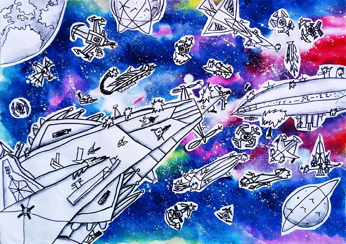 画名:《星球大战》 作者:陈泽源 年龄:11岁 赛届:第25届国际少儿书画大赛