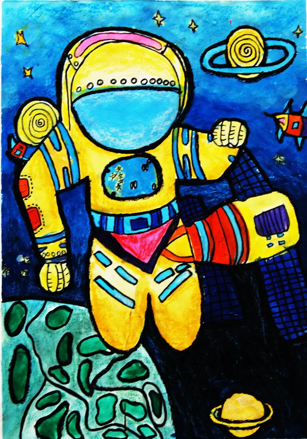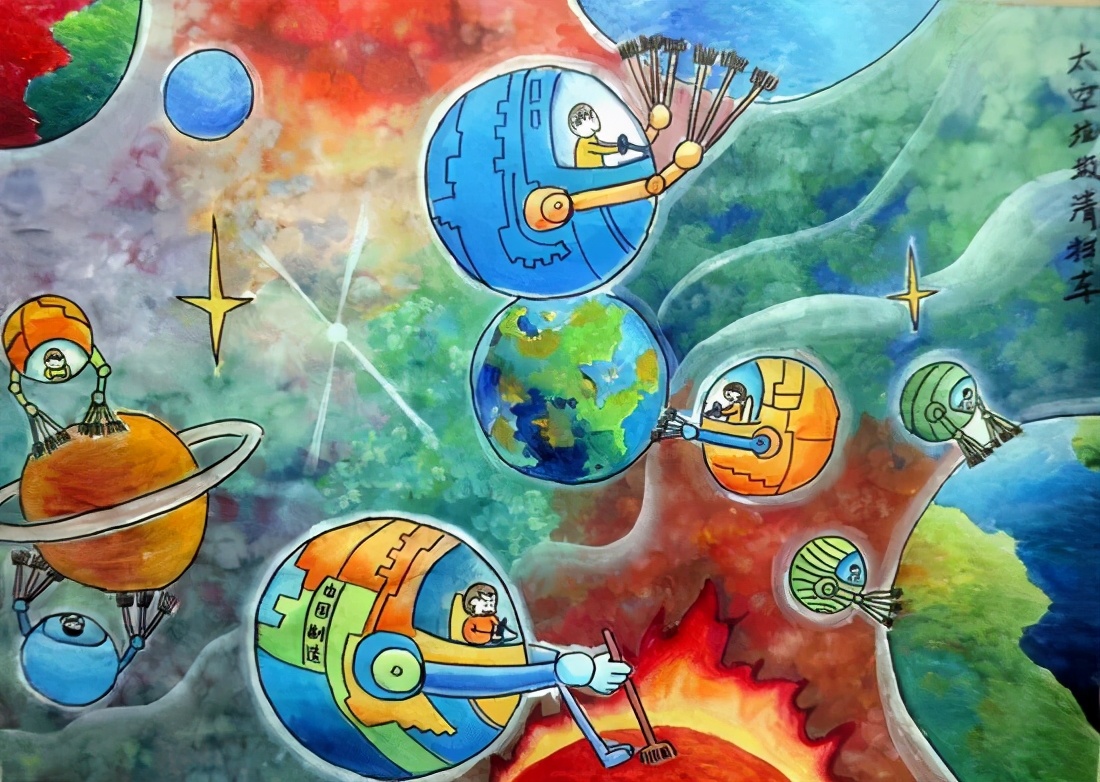 画名:《太空垃圾清扫车》 作者:张春阳 年龄:10岁 赛届:第17届国际少儿书画大赛