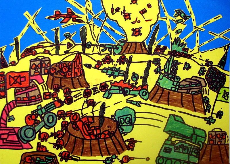 从作品中可以看出小朋友受到网络游戏的启发,在表达激烈的战斗画面时都会表现的真实生动。