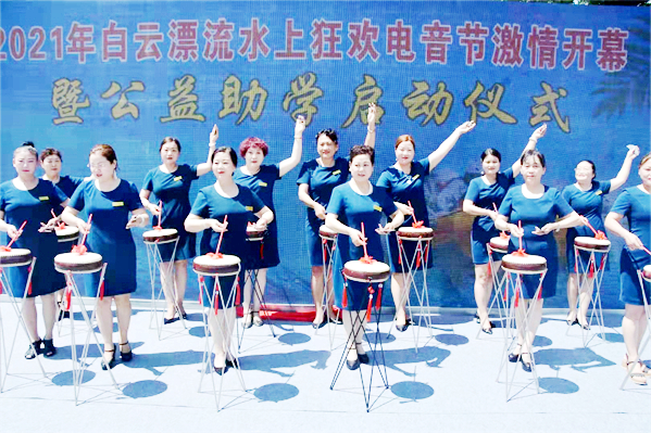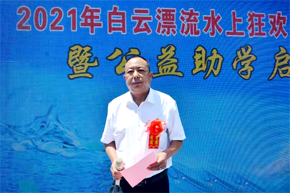 明白川村党支部书记王营见讲话:今天我们欢聚一堂,在此隆重举行2021白云飘流水上激情狂欢电音节开幕暨公益助学启动, 我谨代表明白川村全体村民向张金苹董事长以及白云漂流和水上乐园,送上衷心的祝福 ,同时我们也将带领身边的朋友一起积极参加张金苹董事长发起的公益事业。