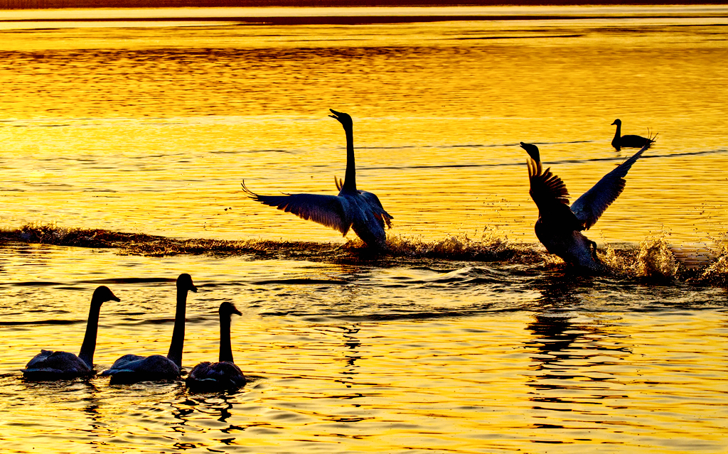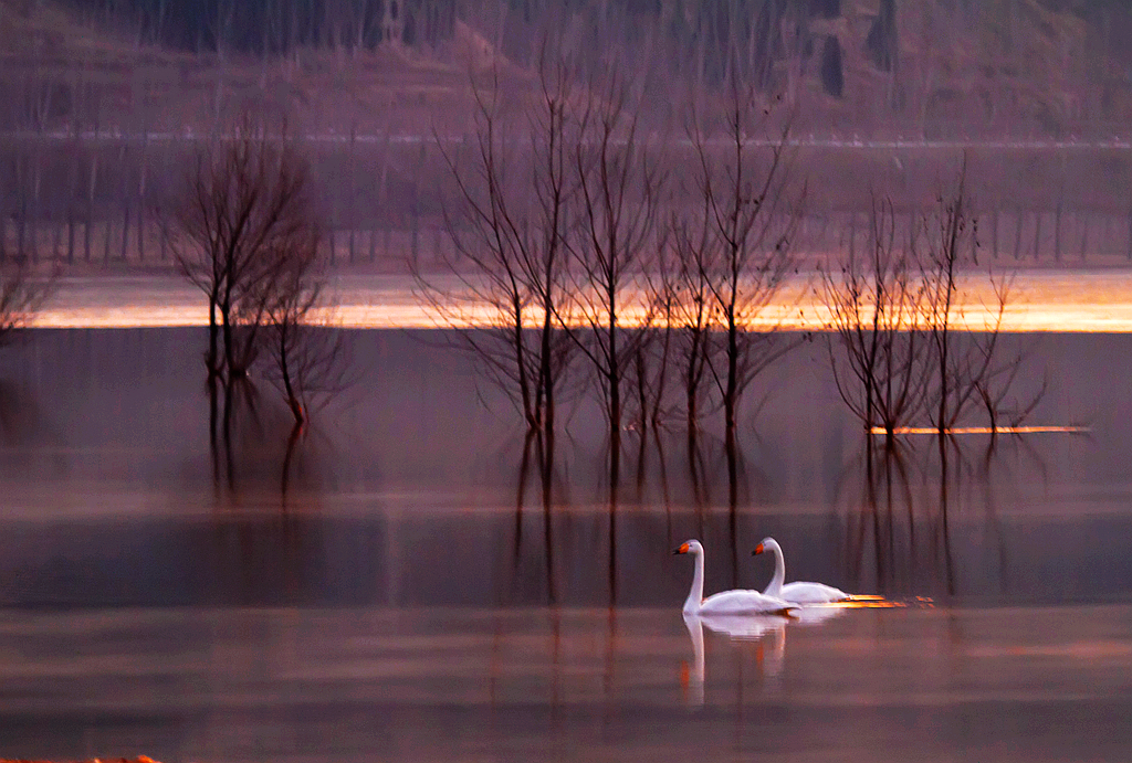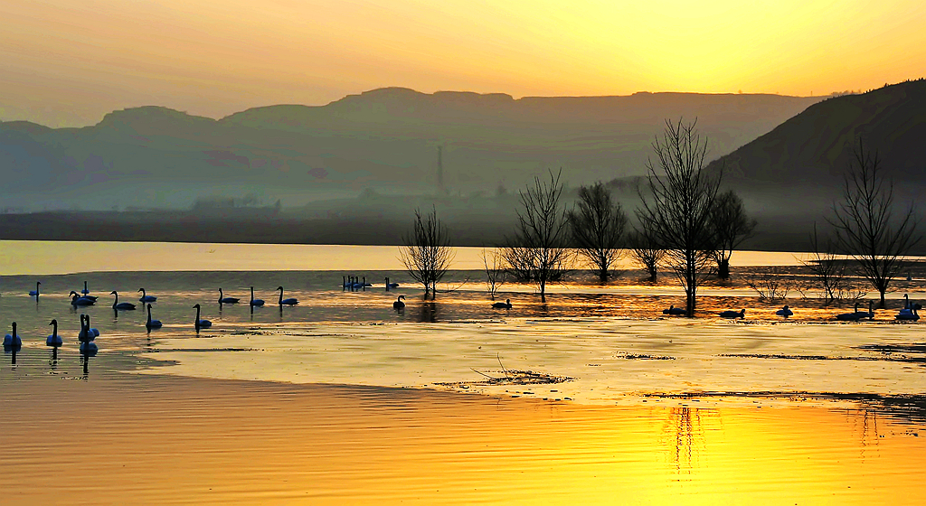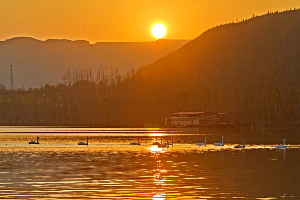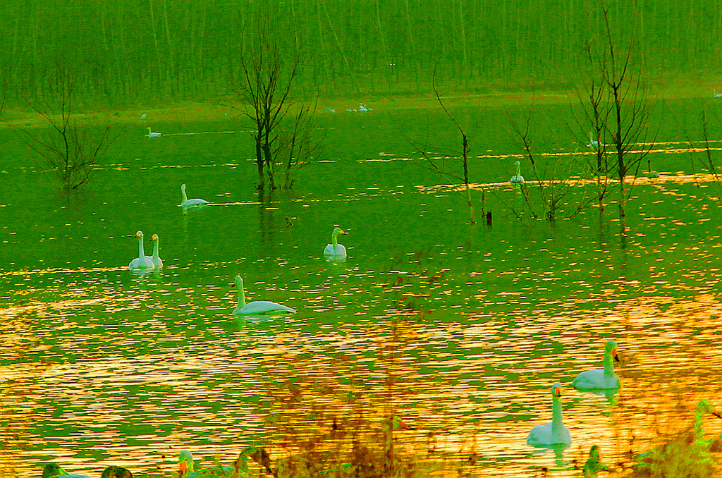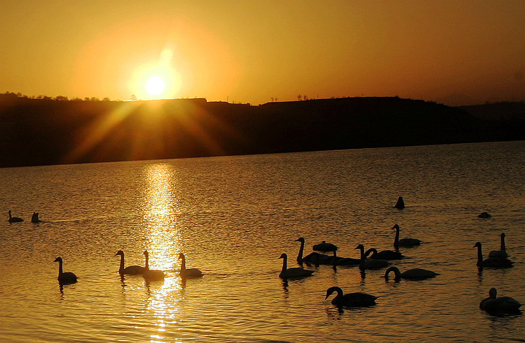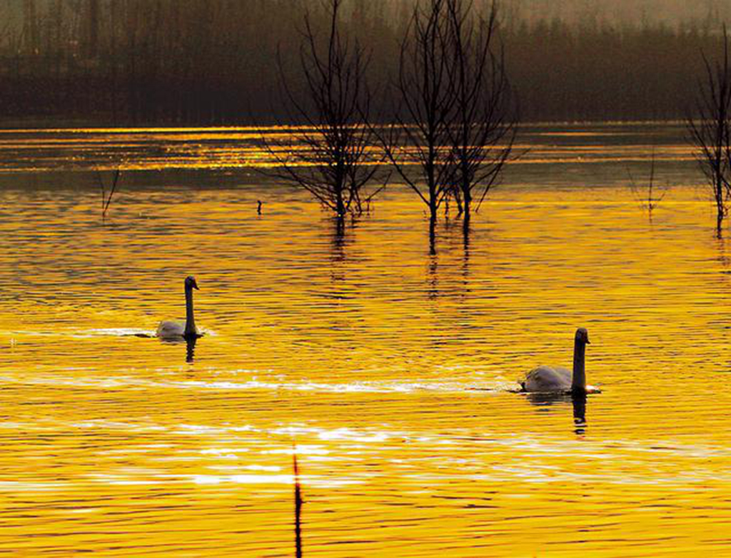夕照天鹅湖