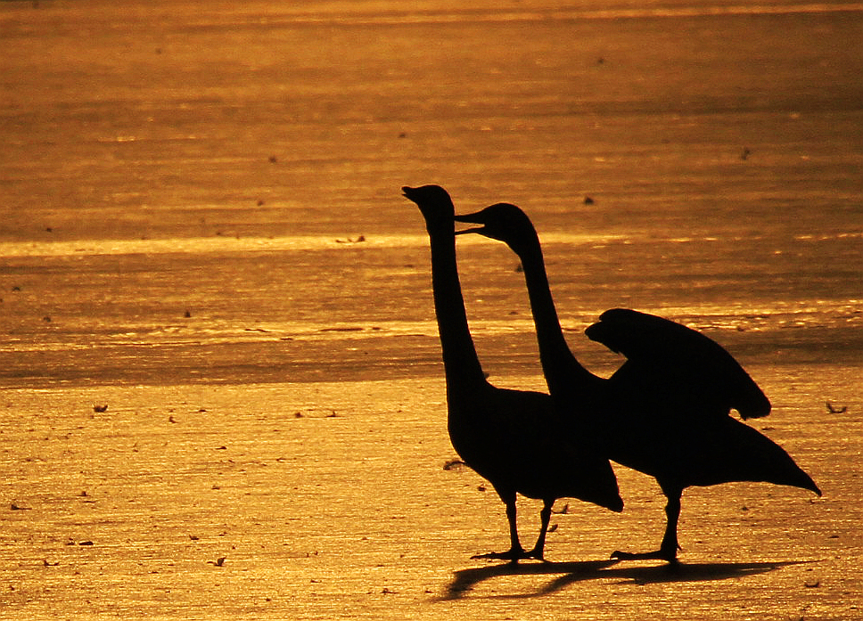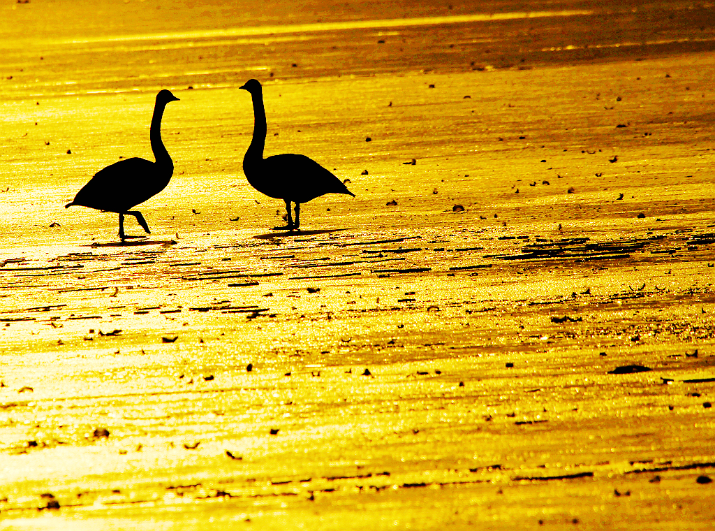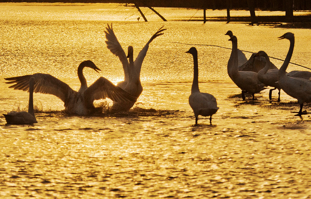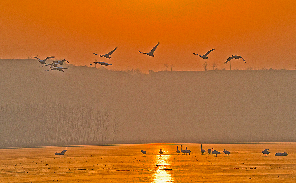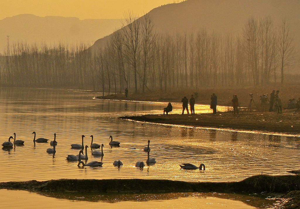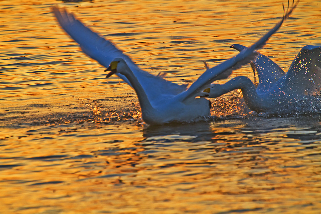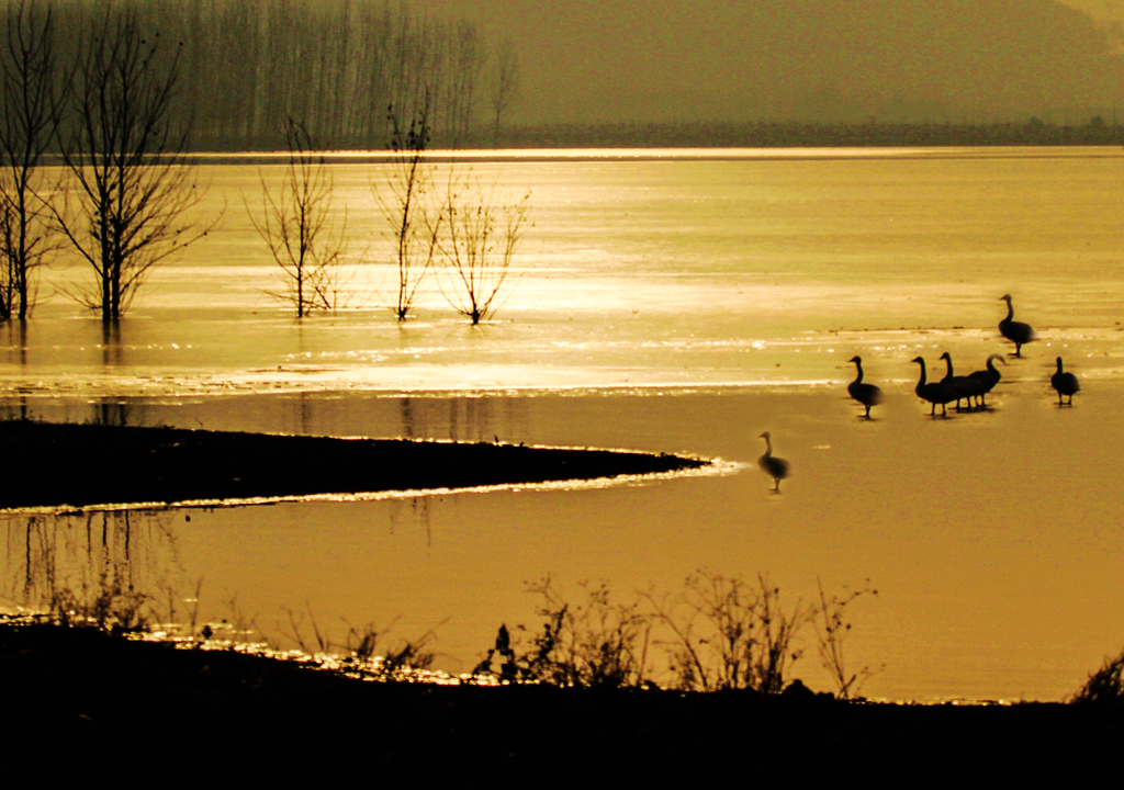 夕照天鹅湖