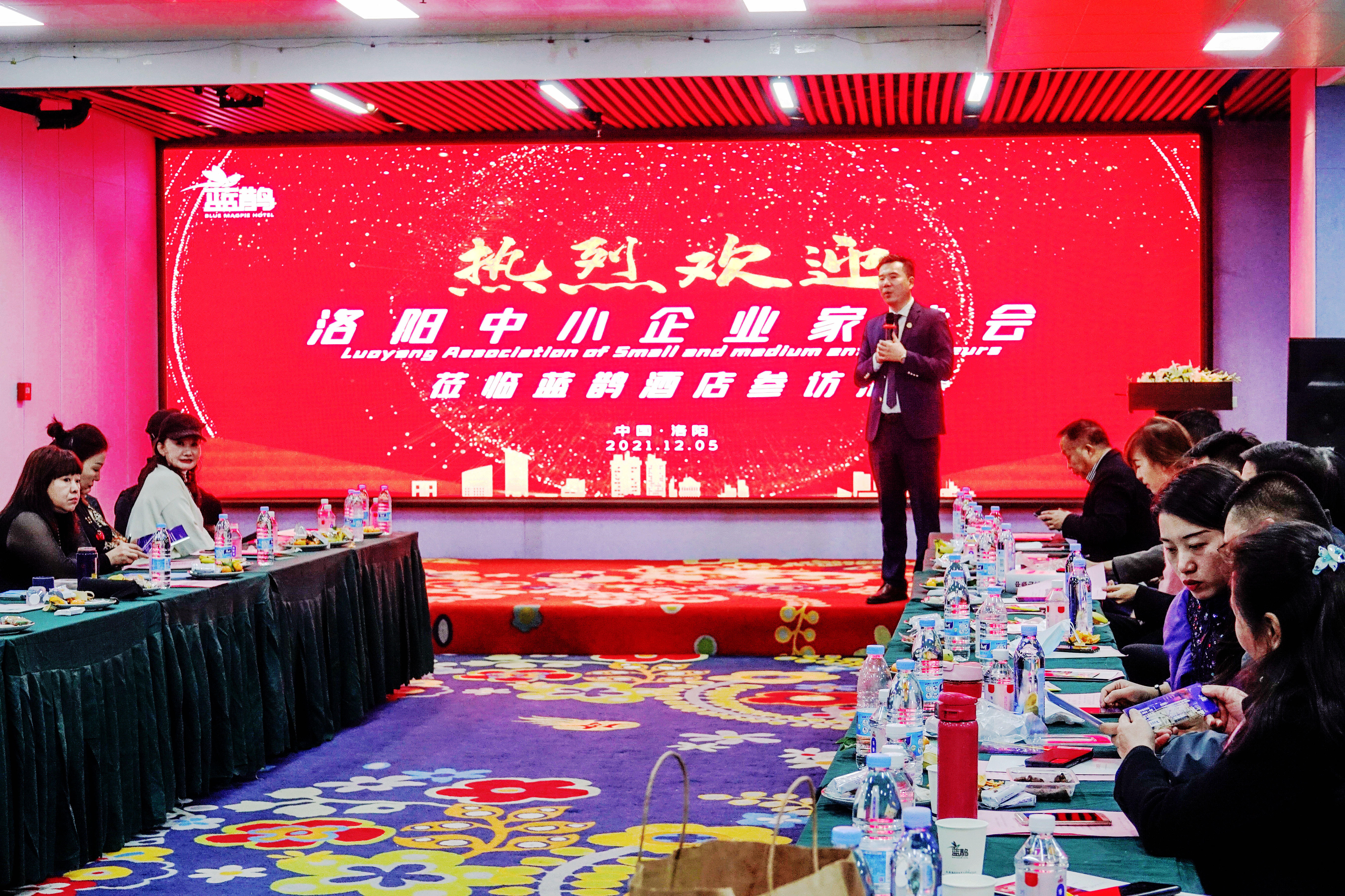 蓝鹊酒店管理有限公司董事长张朋真先生代表公司全体员工对洛阳中小企业家协会一行表示最热烈的欢迎并详细介绍了酒店的发展和长远规划。蓝鹊酒店(Blue Magpie hotel),蓝鹊首家店坐落于古都洛阳创立于2014年5月, 蓝鹊酒店洛阳店以13朝古都千年文化底蕴为依托,是以阅读和艺术为主题的人文酒店。
