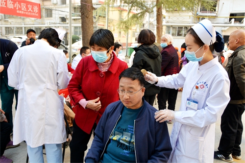 活动当天社区居民听说洛阳市中医院医疗专家到小区里来为大家做义诊,一大早就从家里来到义诊现场等候,在志愿者的带领下有序排队等候检查,活动现场的服务内容不光有中医把脉,还有骨科、妇科、皮肤科多科室的专家坐诊,他们不仅为居民看病,还为居民测量血压,中医刮痧和中医“耳穴压豆疗法”等多个项目,并针对一些老年人常见的慢性病预防知识和保健方法进行了耐心的指导,并结合日常生活习惯为居民介绍相对应的中医调理和预防保健养生知识, 用通俗易懂的语言和生活中的实例讲解什么是冠心病,冠心病的临床症状、危害、治疗原则、注意事项及饮食建议,对于行动不便的居民提供上门诊治,整个义诊活动现场人头攒动,熙熙攘攘,热闹非凡。