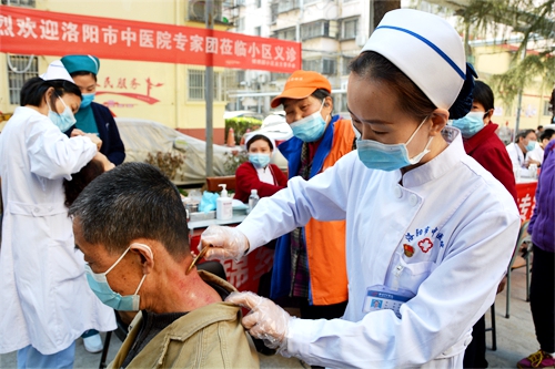 据洛阳市中医院涧西院区负责人介绍:洛阳市中医院广大医务人员牢记使命,认真履行“传承创新发展中医药仁心仁术健康送万家”办院宗旨,特选派副主任医师,脑病科主任杨柳;副主任医师,ICU、脑病科主任李治萌;副主任医师,心病科主任高东升;主任医师,骨伤疼痛科主任曲安龙;妇产科副主任医师李秋娟;外科医师李振龙;肾病科医师王晓灿;ICU医师樊俊阳;骨伤科医师王鹏飞;呼吸内科医师徐浩;护理团队ICU护士长董小娟、妇产科护士长张润芝、急诊科护士长蔡彦敏等组成医疗专家团队将优质、便捷、高效的医疗服务送到百姓身边,提供用药及饮食指导,为广大百姓提供更好的中医药服务,为洛阳卫生事业发展增光添彩。