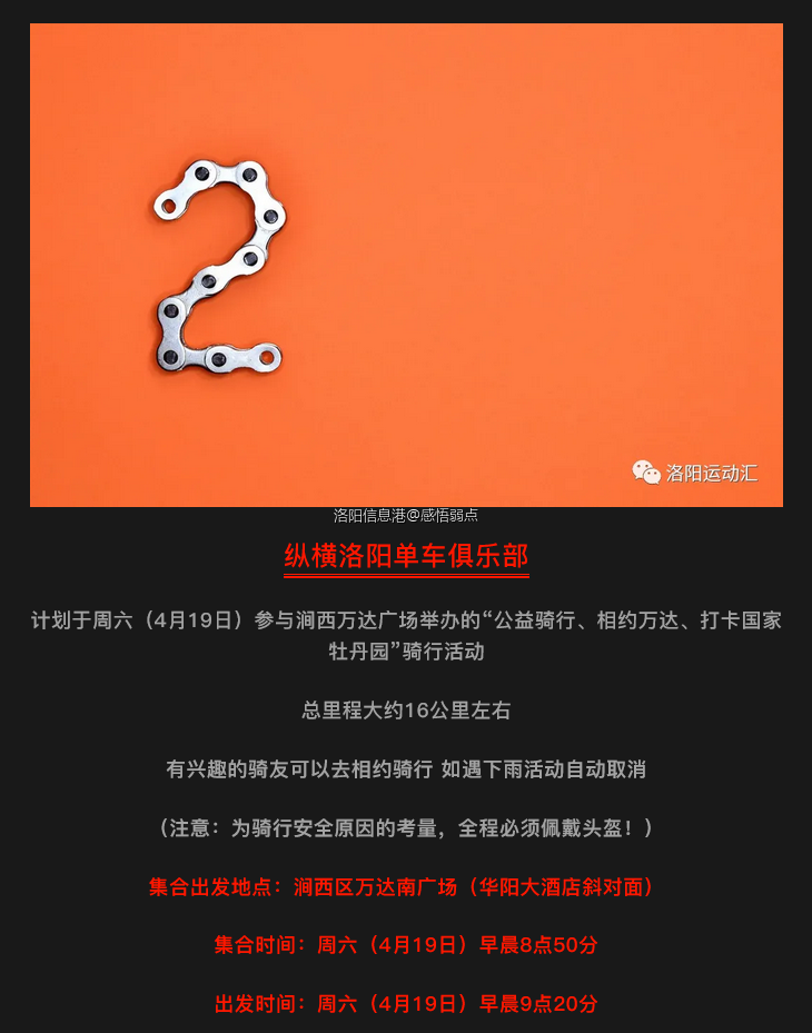 本周末(4月19日、20日)各骑行俱乐部发队活动汇总