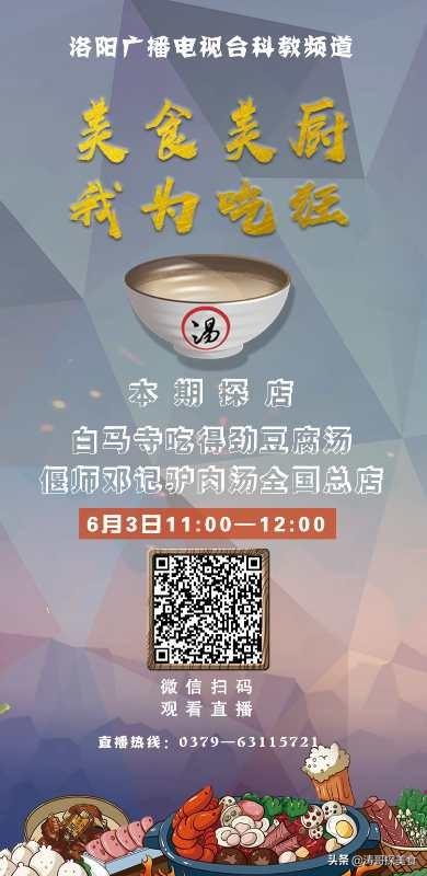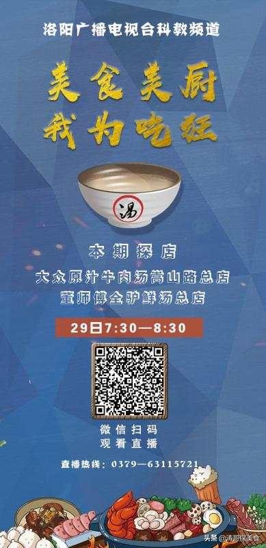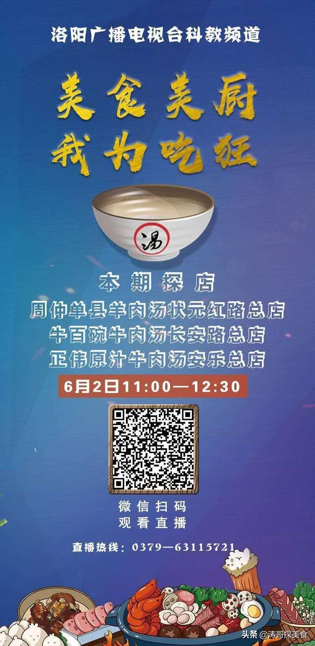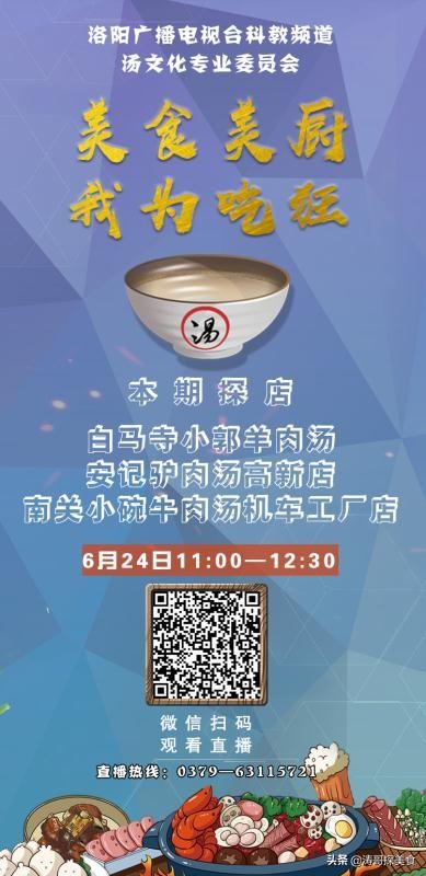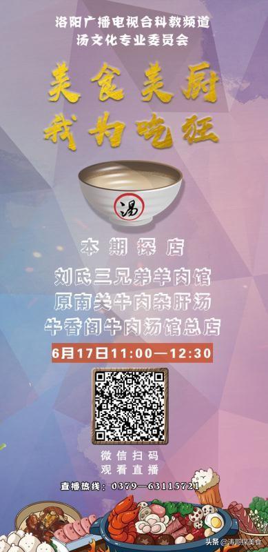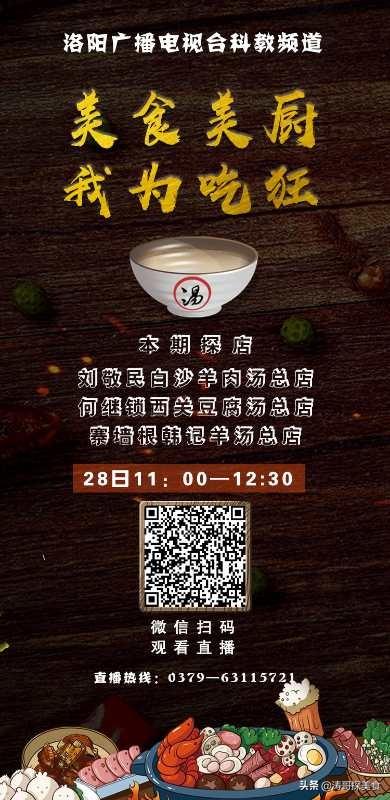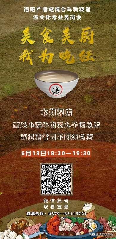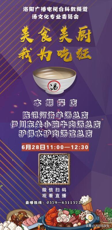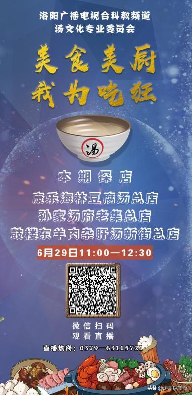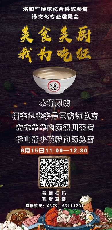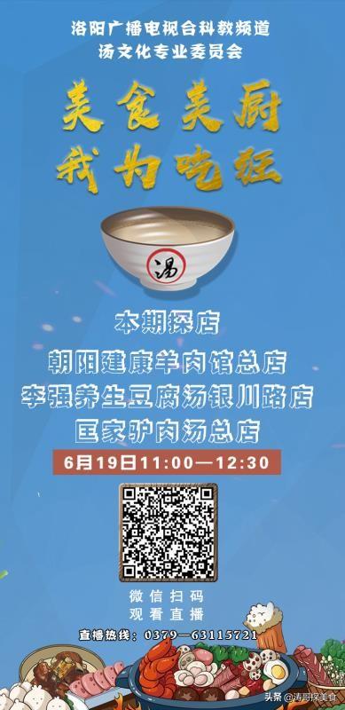根据洛阳市河洛餐饮文化研究会汤文化专业委员会的推荐,共有50多个品牌,200余家汤馆参于本次活动!识别图中二维码,可收看所有直播视频。让我们明年“洛阳老汤文化节”再见!!!