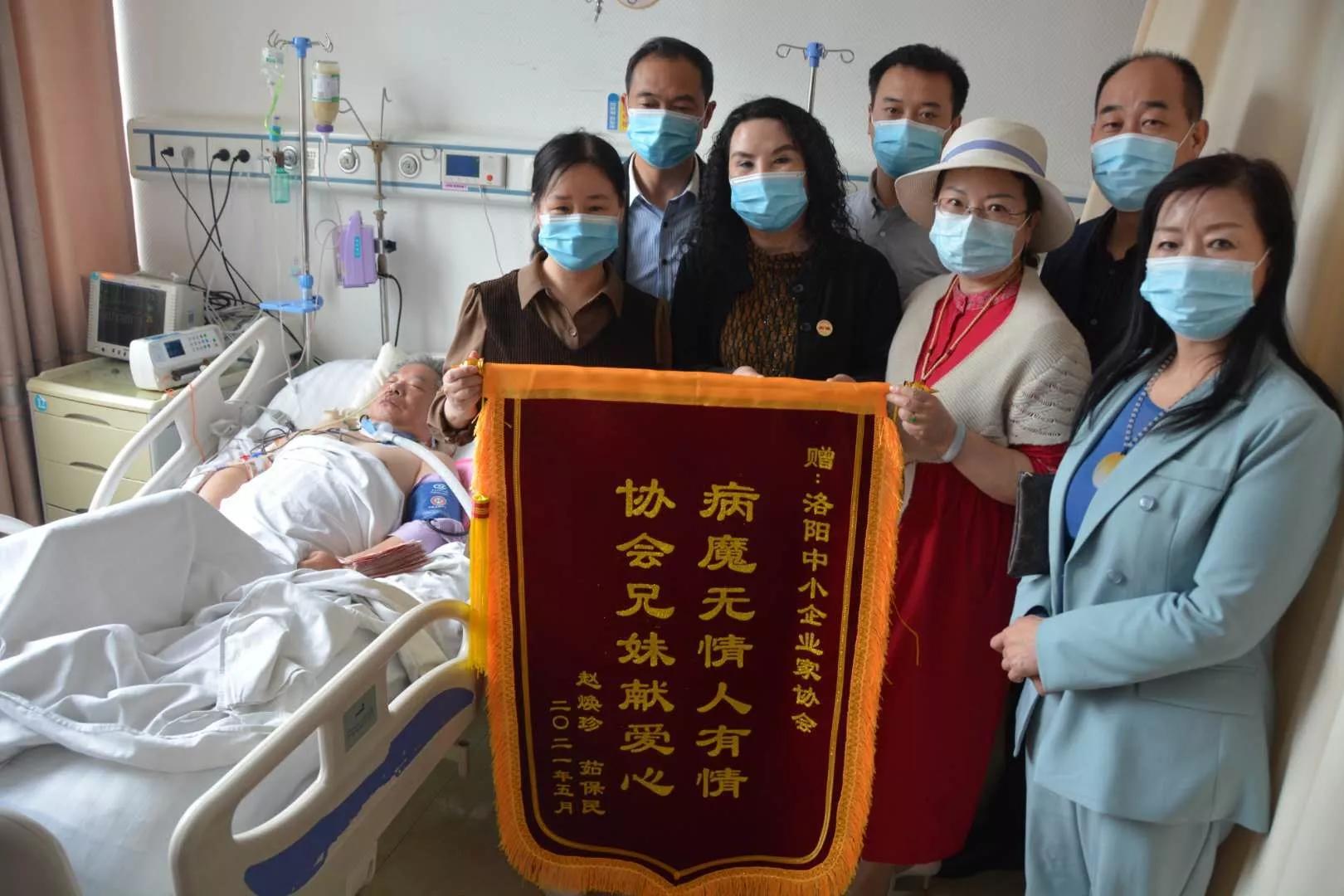 五月二日上午是小长假的第二天,在洛阳市中心医院综合楼6号楼7楼神经外科病房洛阳中小企业家协会会长张金苹,副会长张莹等爱心企业家将洛阳中小企业家协会众多会员捐助爱心款近三万元送到危重病人茹保民的病床前,茹保民的爱人赵焕珍双手接过爱心捐助款流下了感激的泪水,连声说到:谢谢,谢谢,谢谢中小企业家的家人们和社会各界的爱心人士对我们家的关心和关怀。