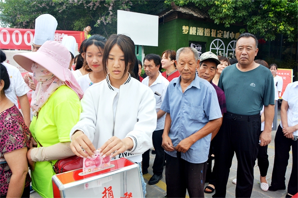 7月24日,洛阳一个爱心企业举行了一场充满爱心的捐赠仪式,来自梦桃源餐饮服务有限公司的员工,排列整齐,依次把自己的爱心捐款投入捐款箱,力所能及献出自己的爱心,为此次河南受暴雨洪灾影响地区人民捐款。