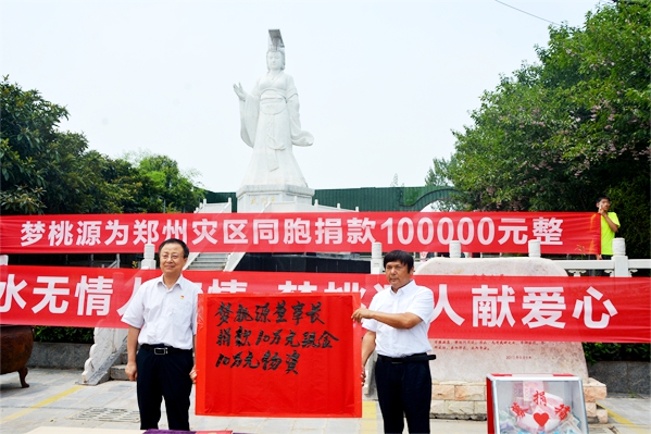 梦桃源餐饮服务有限公司董事长李双军接受采访说,在得知河南郑州、新乡等多地遭受暴雨洪灾之后,就一直想为灾区人民做点什么,企业立即决定为灾区群众捐款现金十万元以及价值十万元的物资。另外又第一时间号召发动企业员工踊跃捐款,得到员工积极响应。据统计,除了企业捐赠的现金和物资外,来自员工自发捐款共计3000余元。